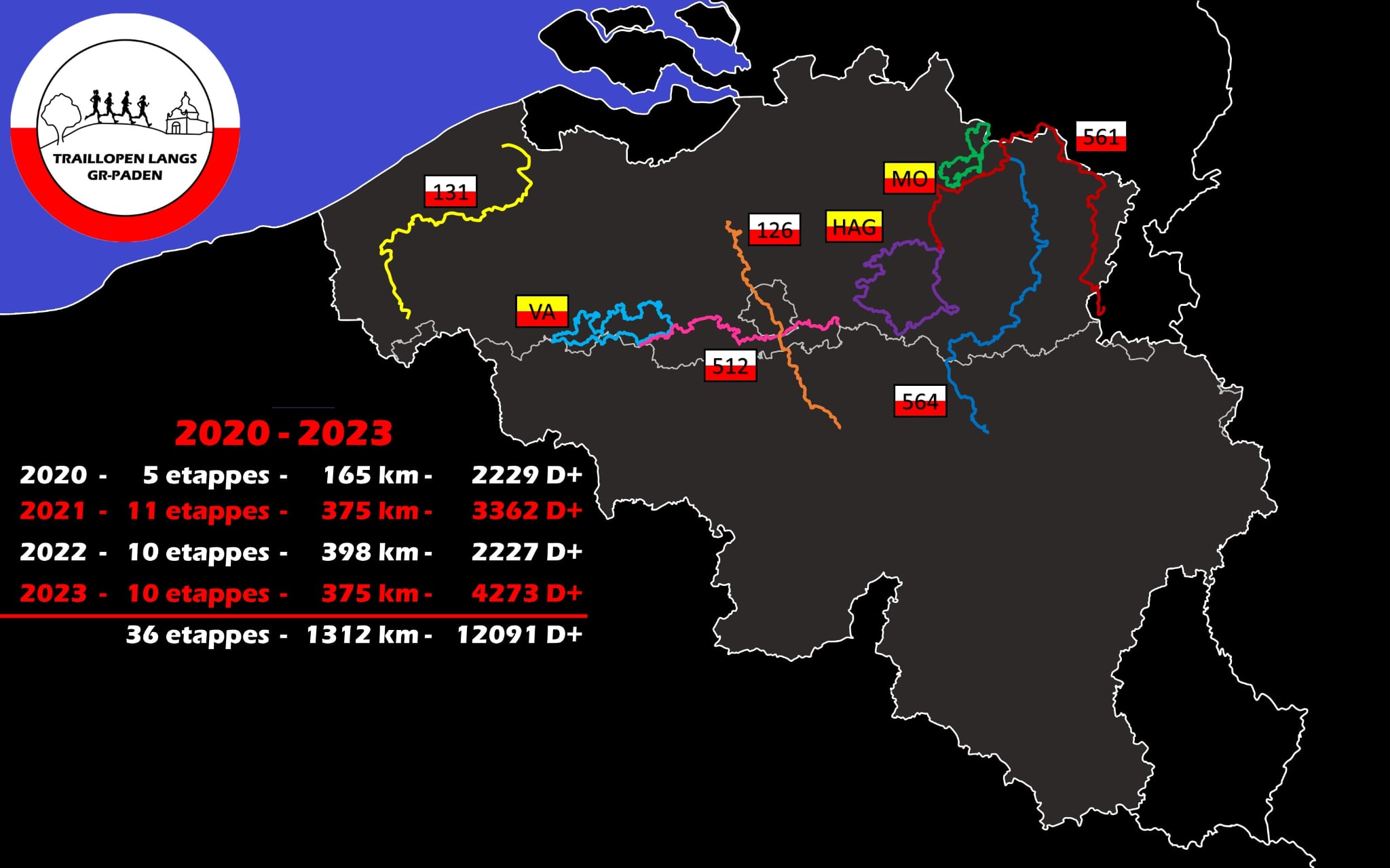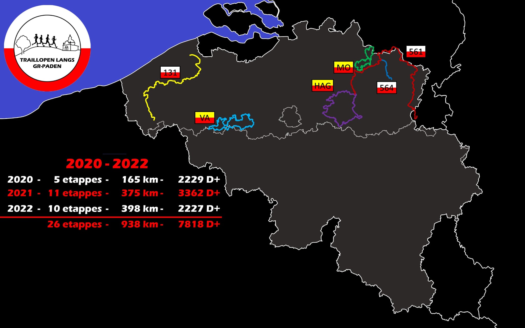 Corona verdween. Traillopen langs GR-paden bleef! De eerste jaren deden we eigenlijk uitsluitend Vlaamse GR-paden. Vanaf 2024 kreeg het Waalse landsgedeelte een vaste stek op de kalender.