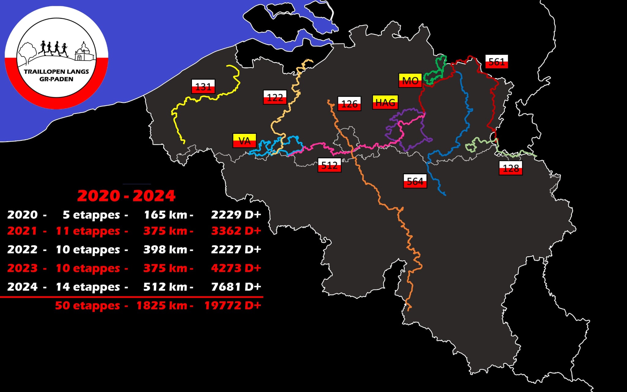 Eind 2024 hadden we al 50 loopjes op het programma. Eind 2025 zullen er dit reeds 64 zijn. Een overzicht per jaar en per route is dus zeker op zijn plaats.